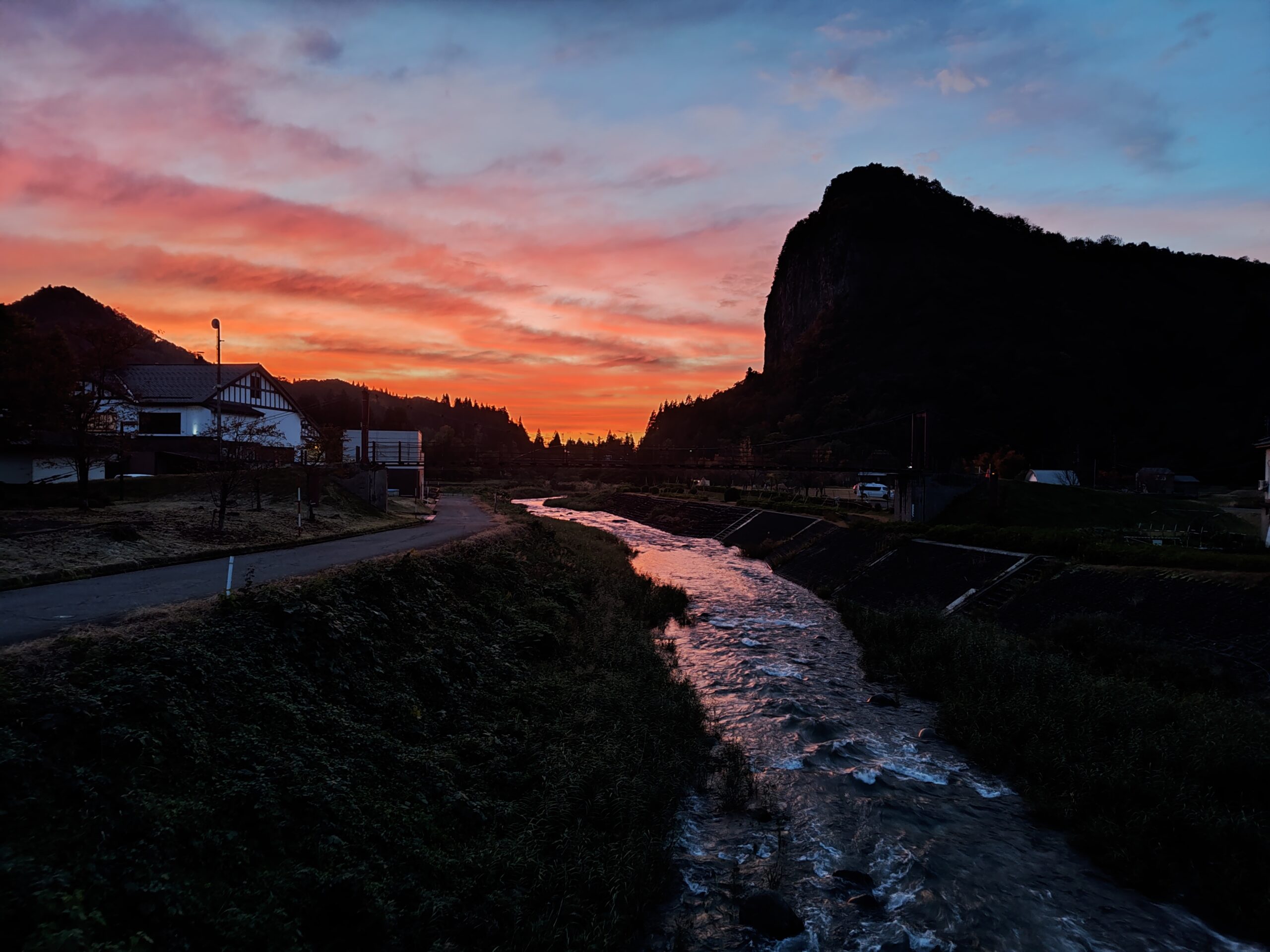 また五十嵐川の橋を渡ればすぐ横に「いい湯らてい」があり、温泉に入ることができる。キャンプ場で割引券(100円)も貰えるので800円(本来900円)で入浴できる、歩いてもすぐなので入浴後にレストランで生ビールを飲んで帰ってくることもできる。入浴後に紅葉する粟ヶ岳(新潟)にスーパームーンも上がり、素晴らしい景色を見ながらキャンプ場に戻ることになった。