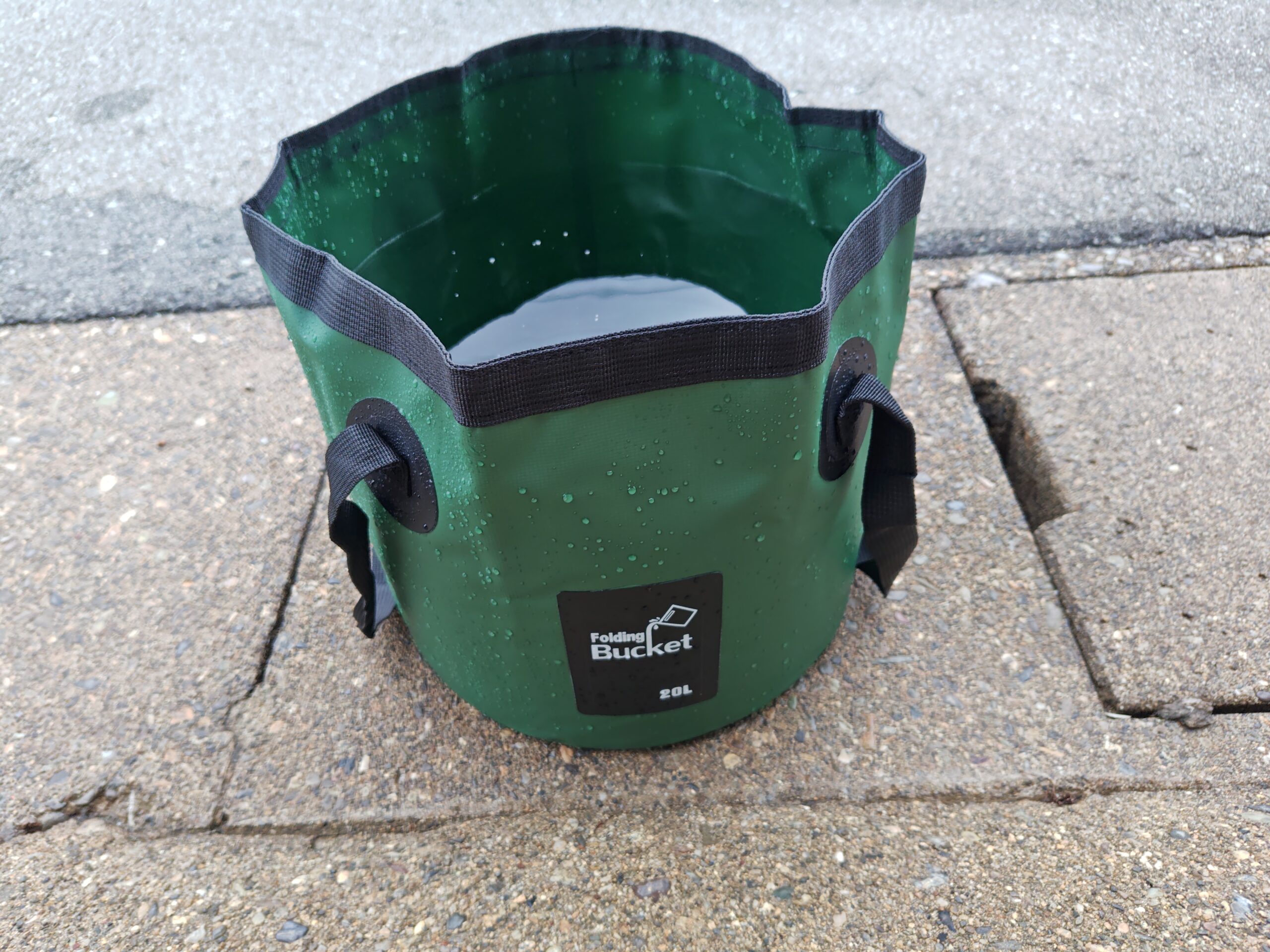 プラスチックバケツに比べて軽くて使わない時はペタンとたためてコンパクトになる、海水を汲んで魚を一時キープしたり水を入れて手を洗ったりタックルの洗浄にも使える万能アイテムである。大抵のサーフでは駐車場から釣り場まで少し距離があるのでこの軽さは非常にありがたい。釣り終わった後もバケツごと水をかけて道具をサッと洗えるのが便利である、そしてしっかりとした作りでランガンサーフクーラーの袋に追加収容できたのでベストチョイスであった。
