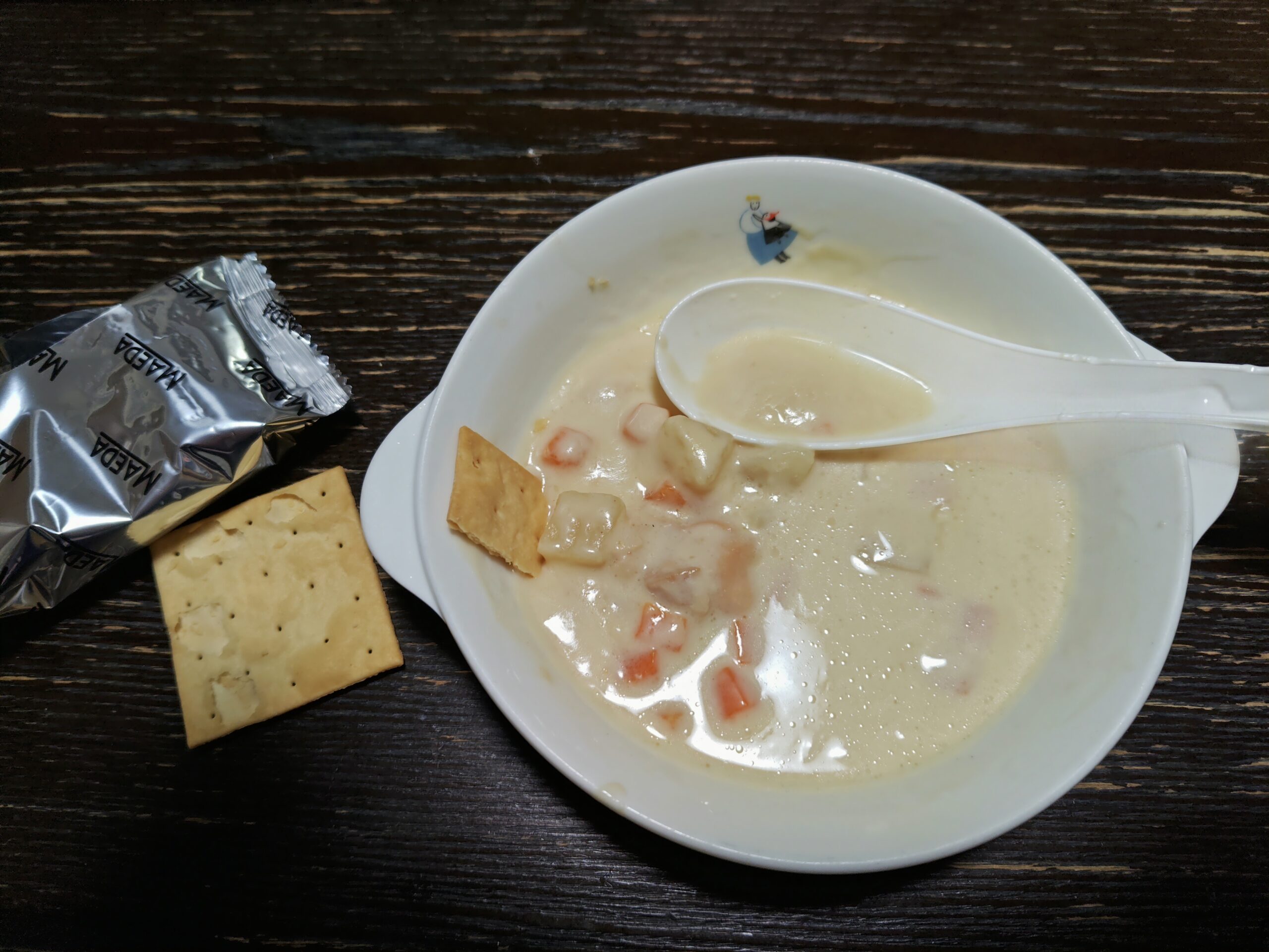 前日の朝食は普通に食べることができる、しかし午後と夕食は事前に購入した食事(クリアスルー)を食べる。具体的には昼食はレトルトに入った肉じゃがと鮭がゆ、夕食はクラッカーとシチューでそこそこのボリュームである。そしてPM9:00に下剤(ピコスルファート)をコップ一杯の水に入れて飲んでおく、すぐに便意は無いが夜中にトイレに駆け込むことになる。
